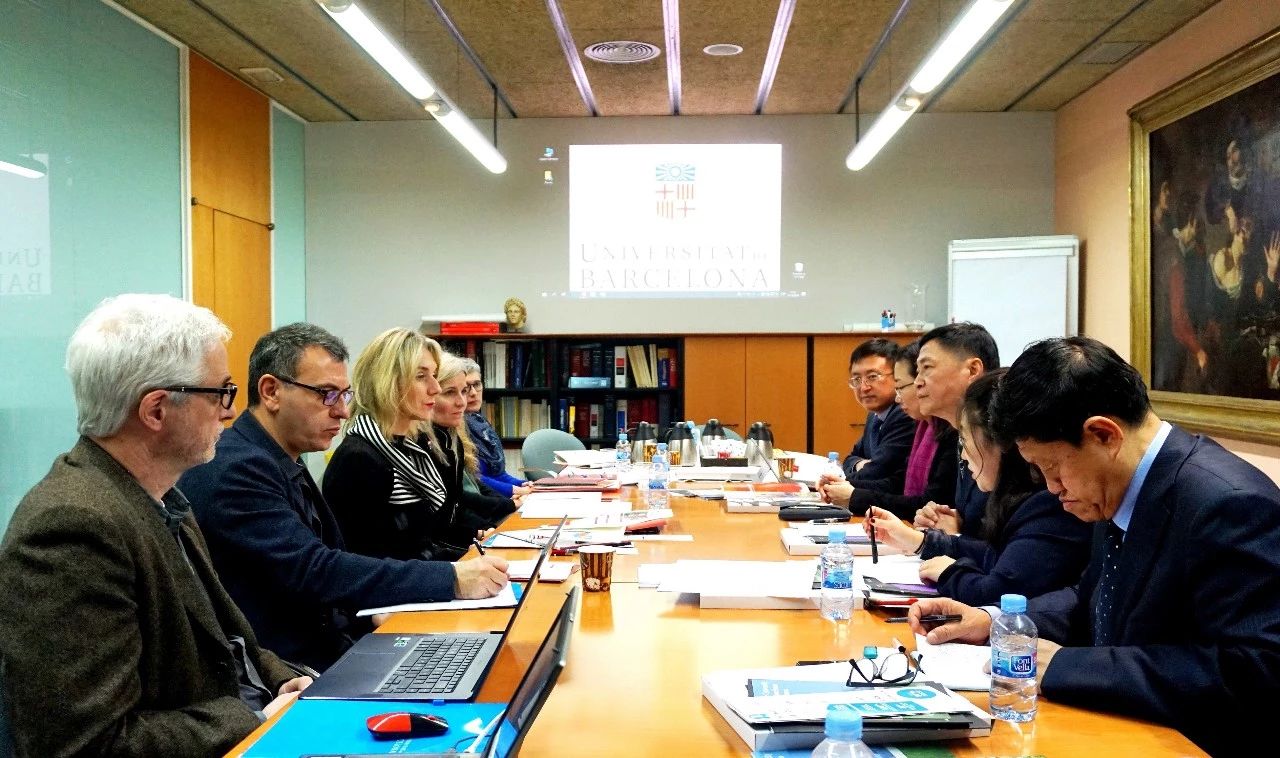 12月11日,巴塞罗那大学校长国际事务代表比比雅娜·克雷斯波(Bibiana Crespo)、国际发展服务部门代表安东尼奥·吉尔(Antonio Gil)、地理与历史女优大全科研副院长贾米·布谢达(Jaume Buxeda)、法女优大全国际事务与科研副院长马尔·坎比斯(Mar Campins)、西班牙语研究中心学术主任伊娃·马丁内斯(Eva Martínez)与代表团进行了工作会谈。比比雅娜从巴塞罗那大学历史、校园规划、国际化举措、院系与课程设置、教学创新与质量保证、科学研究、文化活动与社区服务等方面进行了全面介绍,并就双方共同感兴趣的学生长短期项目、互派教师讲学与培训、合作科研等工作进行了交流。她表示,巴塞罗那大学正积极推动与亚洲,特别是与中国高校开展更多合作,建议两校在相关学科达成共识的基础上签署合作备忘录,进一步推进两校在上述领域的实质性合作。吴振武介绍了吉林大学的发展现状,分享了作为中国教育部直属的重点综合性大学,学校在推进国际化进程中的各项举措和取得的成果。他表示,吉林大学与巴塞罗那大学在规模、学科设置等方面匹配度高,希望本次会谈成为两校未来合作的契机,充分调动相关学科的积极性,促成两校在学生交流、师资互访等领域启动更加多元的合作项目,为两校未来推进扎实的学科合作奠定基础,建立战略合作伙伴关系,助力我校“双一流”建设。