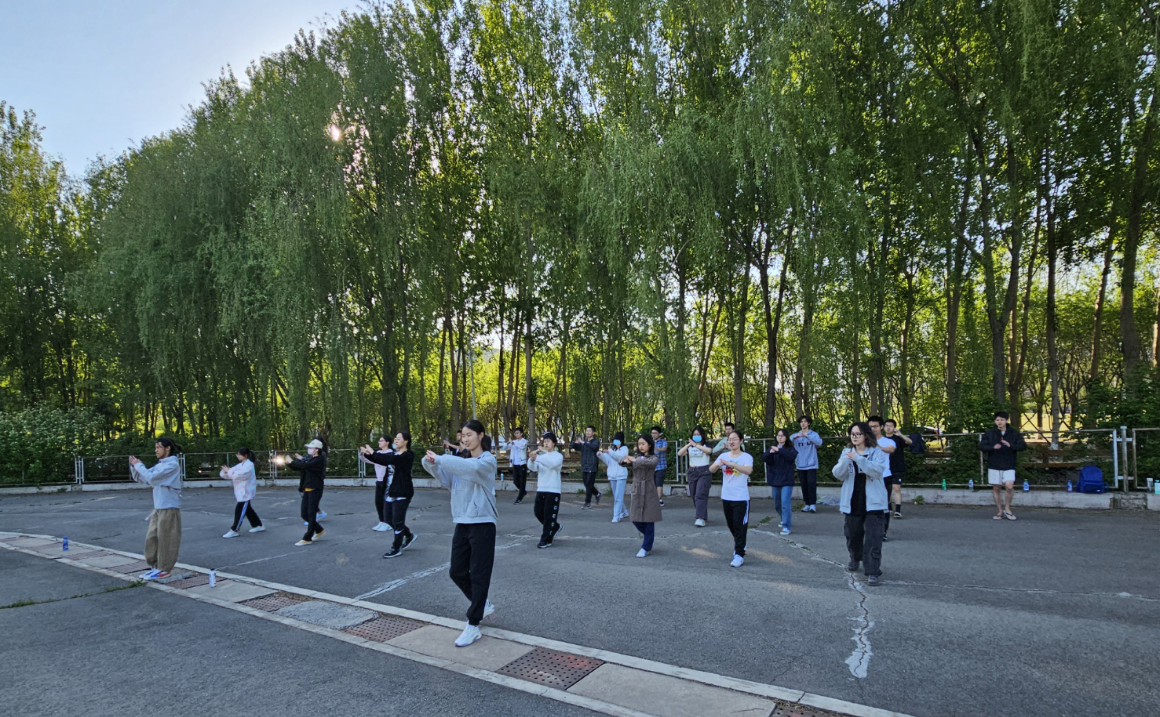 自4月23日起展开八极拳集体训练。集训由校园文化部张航同学组织,王俊超、张延朋同学担任领队,2022级共计30名同学参加训练。