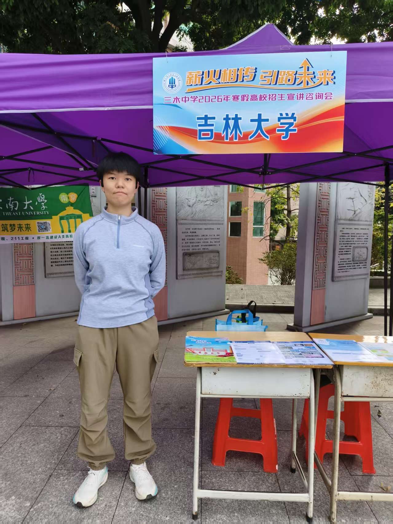 在东南地区,邹雨翘于2026年2月6日为高中的学弟学妹们送去了北国春城的问候与鼓励。本次宣讲设置摊位咨询与专场宣讲两大环节,以高三学子为主要受众,同时覆盖全校各年级学生。邹雨翘结合自身在吉大的学习生活经历,为同学们逐一解答升学、择校、专业选择等方面的疑惑,还借助PPT,系统讲解吉林大学的优势学科、人才培养模式与在粤招生政策,全方位展现了吉大的雄厚办学实力与独具韵味的北国风光。